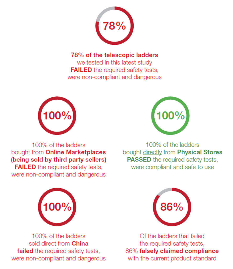 They tested 18 telescopic ladders (bought from online marketplaces AND dedicated DIY retailers in-store) to investigate their conformity to product standard EN 131-6. The results?